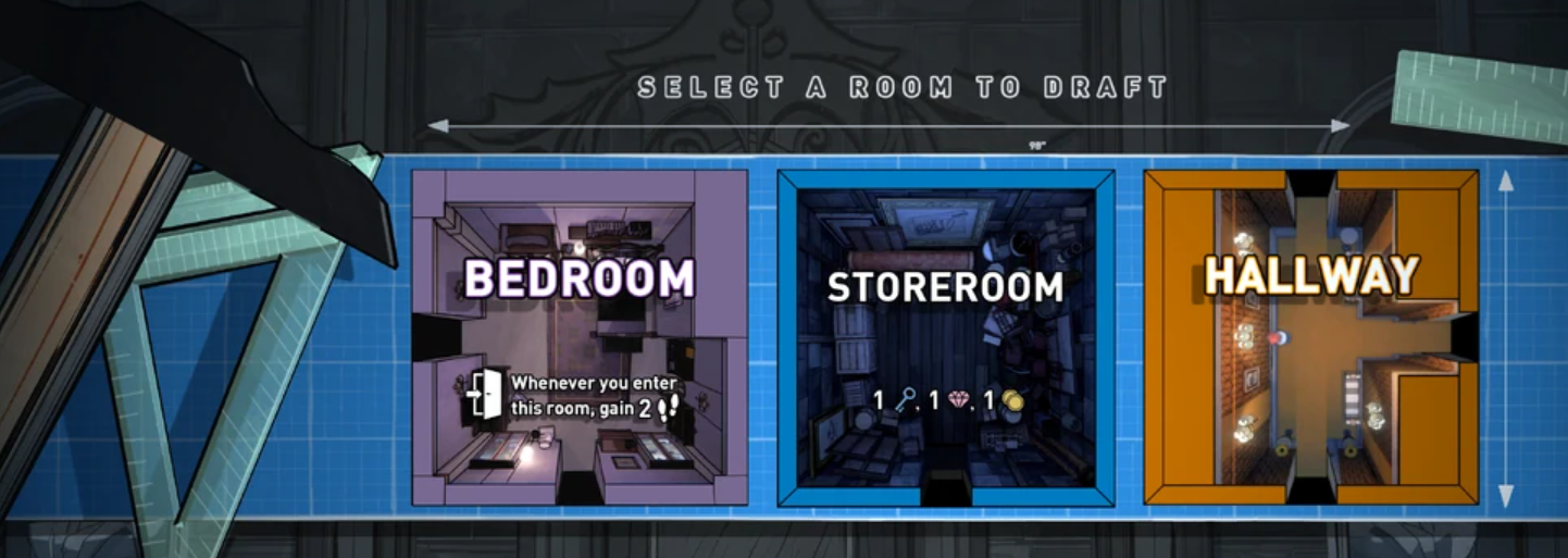 There are lots of other mechanics I won't get into for the purpose of this retrospective - locked doors, item crafting, resource management - but needless to say it's a delight working your way through the many layers of the puzzle. My absolute favorite mechanic is the room drafting (see above). There are so many unique rooms, and many surprises you don't expect. It's so fun to try to unlock them all and understand how they fit into the larger whole.